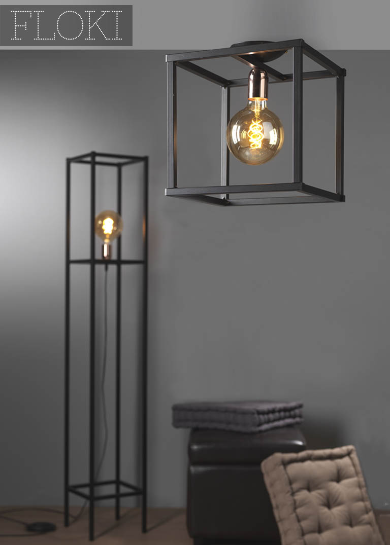 Floki è una collezione dall'anima urbana, contemporanea e potremmo dire anche industriale. I vari modelli di lampade che propone si caratterizzano tutti per avere delle strutture total black, vale a dire completamente nere, realizzate in metallo. L'elemento identificativo è proprio la struttura in sé, che può essere paragonata ad una sorta di gabbia aperta. Infatti, le lampadine in ciascuna lampada sono a vista e contribuiscono alla definizione dell'estetica dei singoli prodotti.
