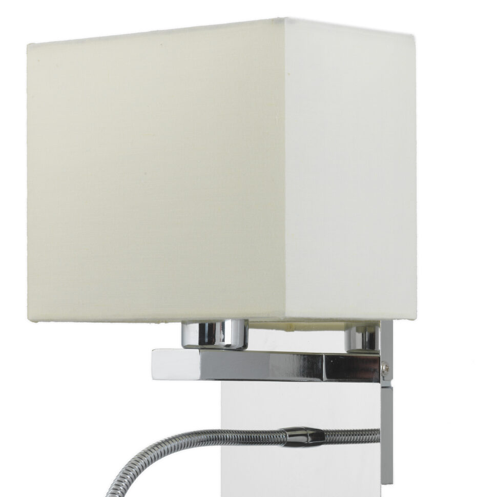 Applique base rettangolare e paralume rettangolare in tessuto color avorio. Perfetta da posizionare accanto al letto per leggere la sera.