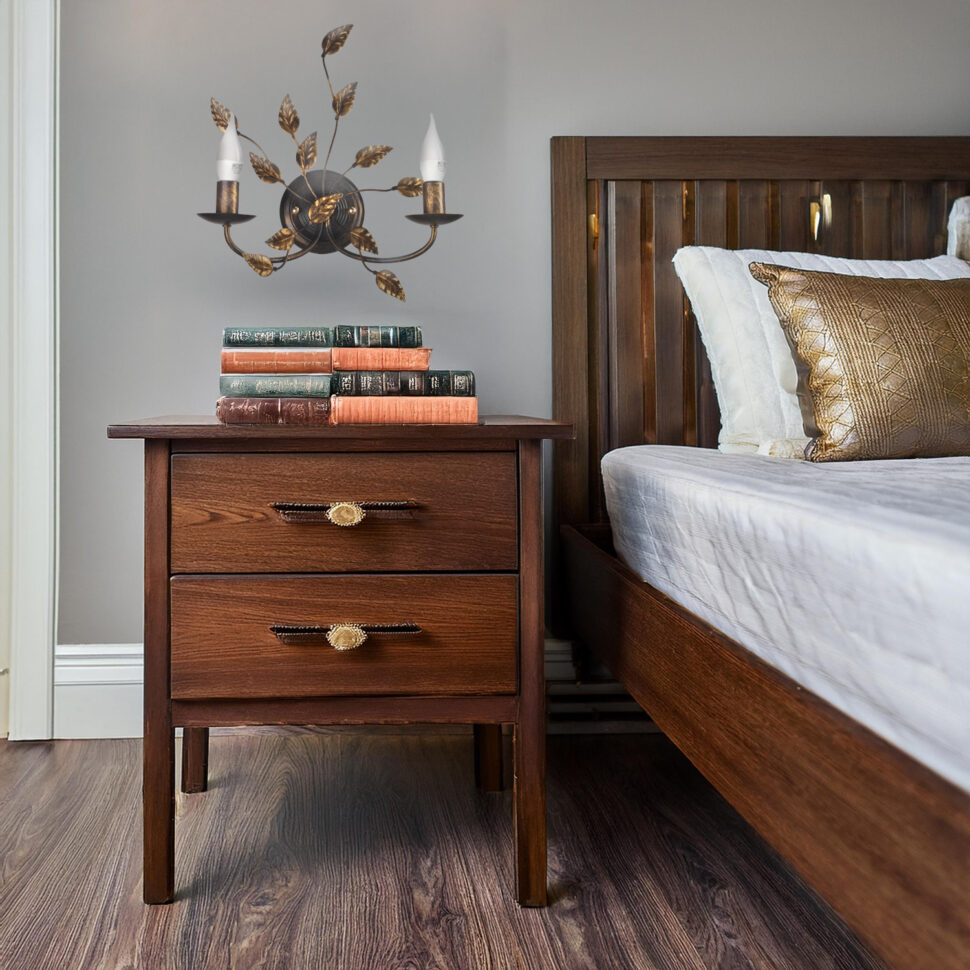 Lampada da parete a 2 luci. Struttura color bronzo spennellata oro con foglie decorative. Lampadine non incluse. Ideale per zone di passaggio come corridoi, si adatta bene anche a soggiorni e grandi camere da letto.