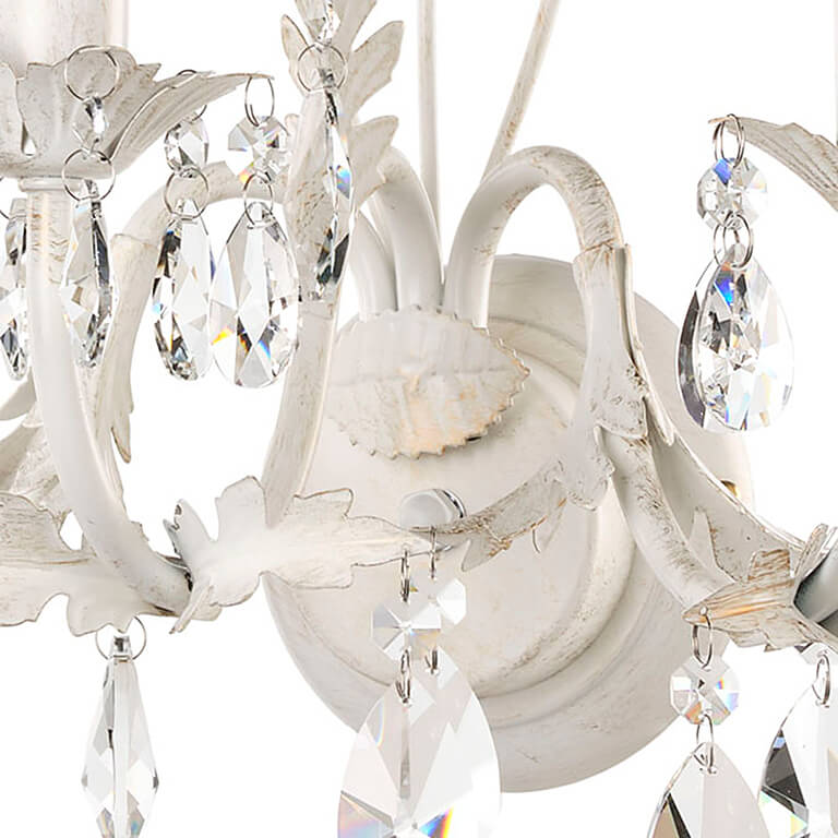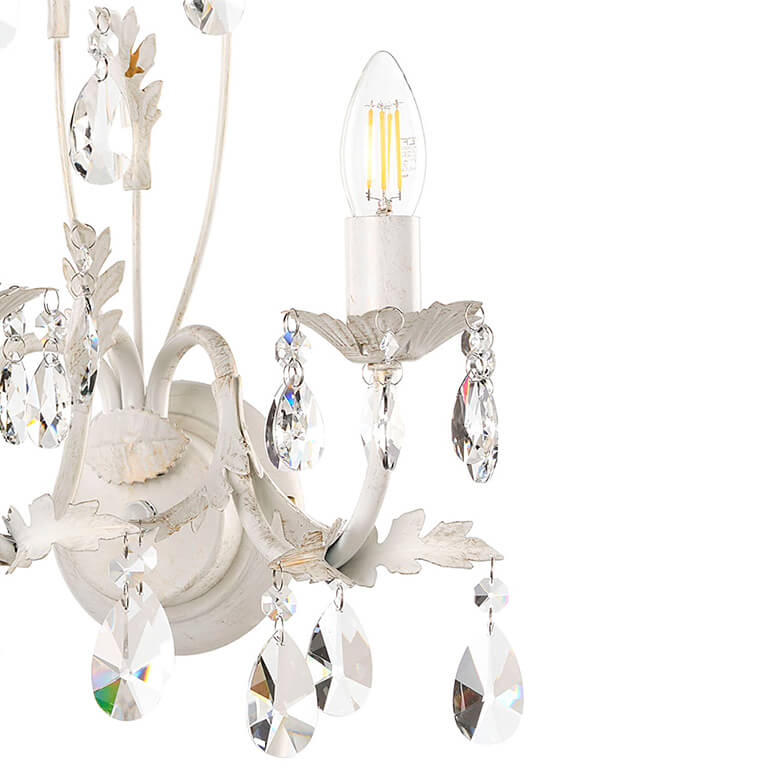 Lampada da parete a 3 luci. Struttura color avorio spennellata oro con foglie decorative. Lampadine non incluse. Ideale per zone di passaggio come corridoi, si adatta bene anche a grandi soggiorni e salotti.
