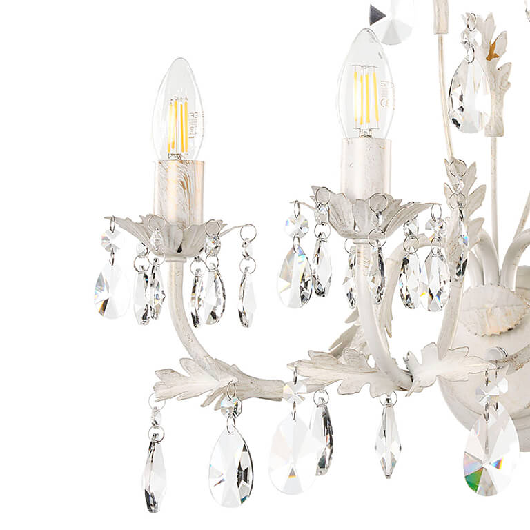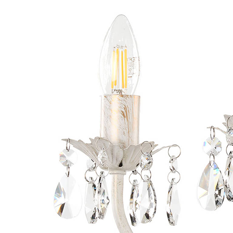Tra le cose che non passano mai di moda c'è da annoverare l’eleganza classica. La collezione Teresa con le sue lampade è un chiaro esempio di fascino senza tempo. I vari modelli colpiscono per la grande presenza di decorazioni, tra cui le scintillanti gocce di cristalli k9, di due differenti misure. Queste gocce a forma di mandorla contribuiscono a creare degli arredi unici e portano una luminosità ancor più particolare grazie ai giochi di luce che favoriscono. La maggior parte delle lampade di questa collezione non ha paralumi, cosa che porta una luce maggiore, più viva e diretta negli ambienti, e che è in linea con le usanze di una volta. Tuttavia, abbiamo realizzato anche un paio di modelli dotati di paralume in stoffa color avorio. Il paralume ha un effetto plissé al centro e cuciture a vista sui bordi.