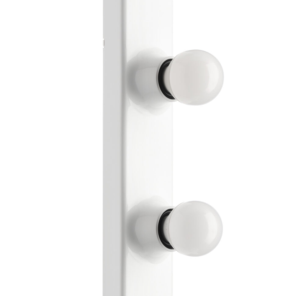 Lampada da parete caratterizzata da 5 luci con attacco E14. Questa lampada è ideale per la zona bagno o per una zona trucco. L'applique si può posizionare sia verticalmente che orizzontalmente. Basta accendere l'interruttore e le luci vi faranno sentire una vera e propria star di Hollywood! Il giusto make up e non avrete nulla da invidiare a Marilyn Monroe! Il colore della struttura è bianco.