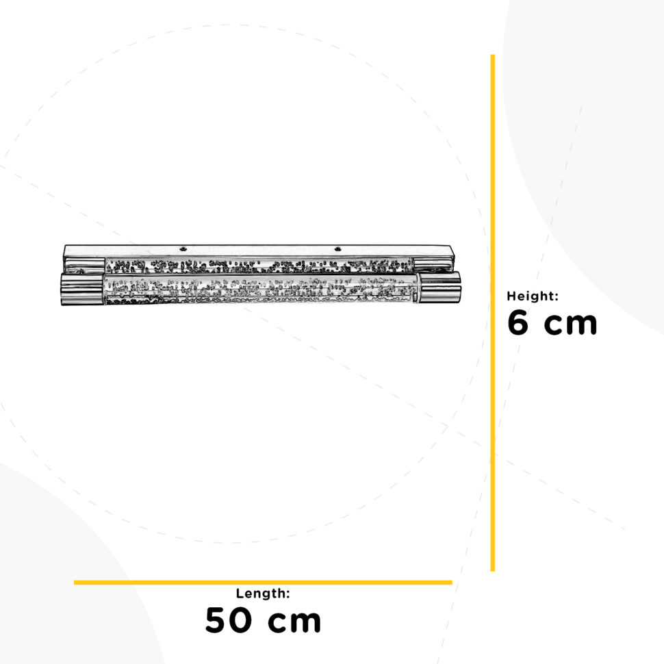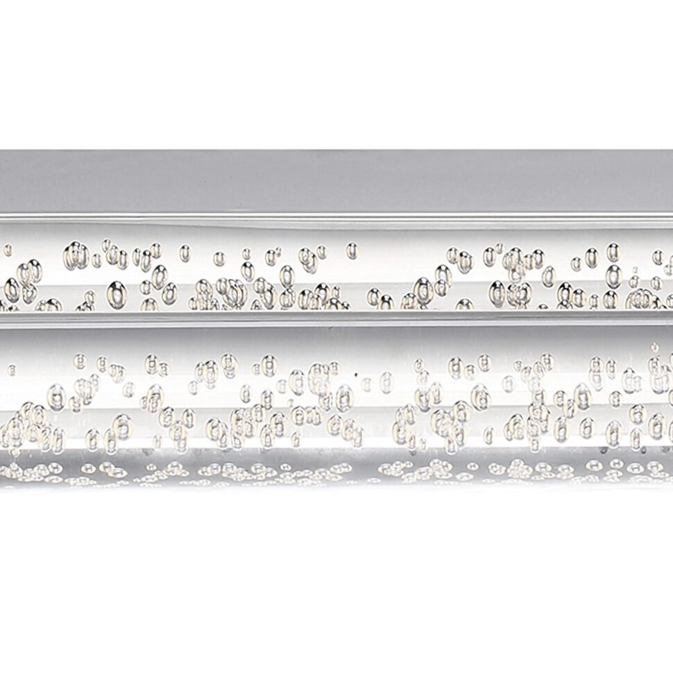 Lampada da parete con LED integrato. Base in metallo cromato e LED cilindrico con effetto bolle d'acqua. Perfetta per gli specchi, specialmente in bagno. Delicata come la rugiada, questa applique è molto elegante. L'applique Rugiada offre un punto luce importante, dato che hanno un Led integrato, e completano con gentilezza ed armonia gli arredi.