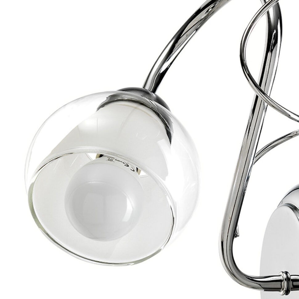 Per creare poi degli effetti di luce particolari e raffinati abbiamo scelto un doppio paralume in vetro. Ogni lampadina sarà quindi racchiusa in un primo paralume conico in vetro bianco satinato che sarà contenuto a sua volta all'interno di un altro paralume in vetro. Quest'ultimo si caratterizza per essere trasparente e per avere una forma semisferica.