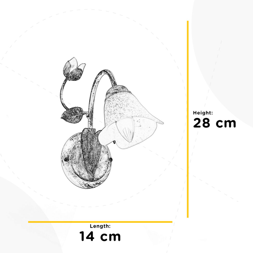 Lampada da parete a 1 luce con attacco E14. La luce è rivolta verso il basso. Le decorazioni floreali rendono il prodotto elegante e affascinante. Ideale per corridoi e camere da letto. Alto 28 cm, largo 14 cm e profondo 23 cm.