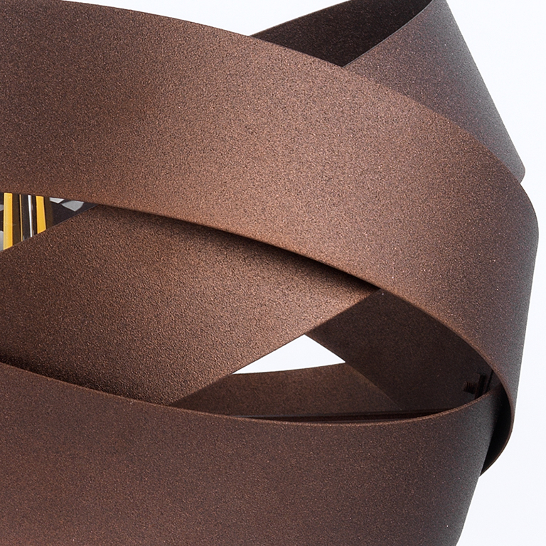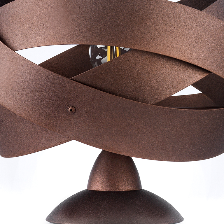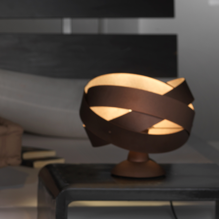 I modelli di lampade Abbraccio sono tutti realizzati in metallo ed il loro elemento distintivo sono proprio le fasce ottenute con la tecnica di taglio laser che si intersecano tra di loro. Ciò da vita ad atmosfere di calore, che trasmettono sensazioni di protezione e viene naturale sentirsi accolti, al sicuro…a casa.