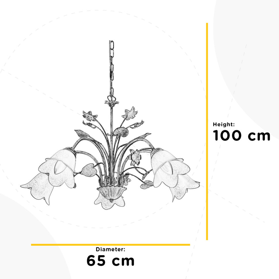 Lampada da soffitto a 5 luci. Ideale per la zona giorno, ma anche per la zona notte. Sospensione con attacchi E14, diametro 65 cm.