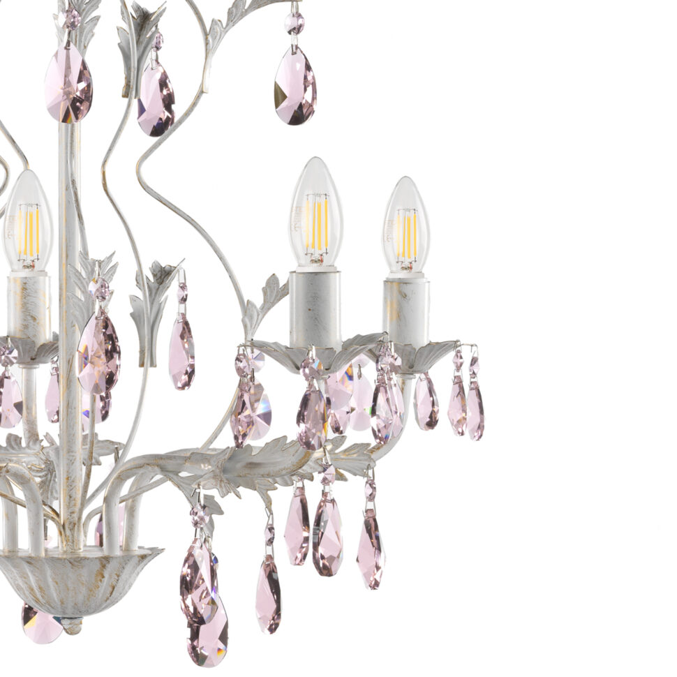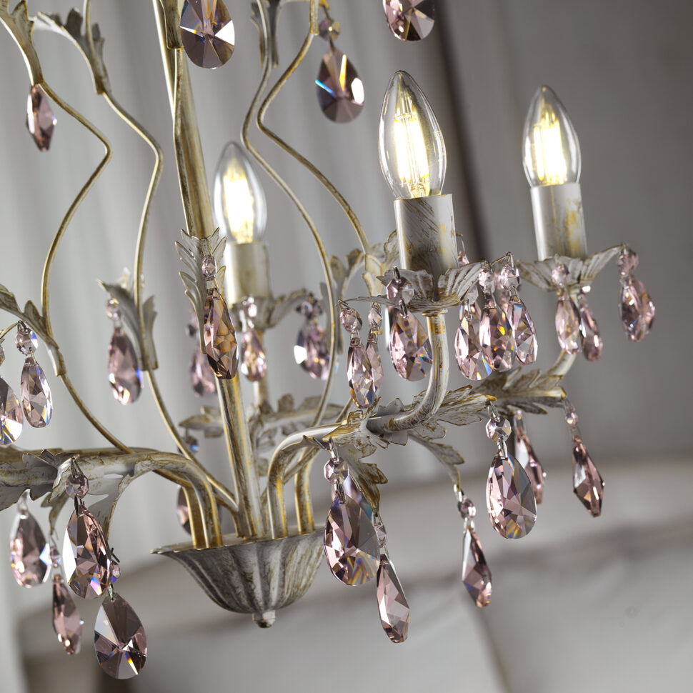 Kate è una collezione di lampade dal fascino femminile, sono modelli dai colori chiari e delicati. Parliamo infatti dell'avorio delle strutture e del rosa, presente invece nel dettaglio che identifica la collezione, le gocce di cristalli. La caratteristica principale dei modelli di lampade Kate è data infatti dalle presenza di gocce pendenti a forma di graziose mandorle rosa.