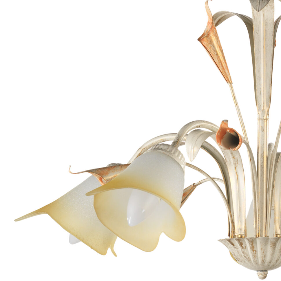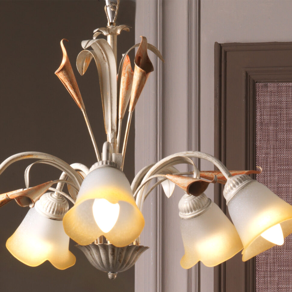 Quello della collezione Lucrezia è senza dubbio uno stile raffinato e tradizionale che si contraddistingue per le linee classiche ed armoniche dei suoi modelli. Tutte le strutture sono realizzate in ferro lavorato a mano in Italia e sostengono dei paralumi in vetro bianco che, nella quasi totalità dei casi, sono a forma di calla. I paralumi sono sabbiati al loro interno e presentano delle leggere sfumature che tendono all'ambrato sulla parte esterna. Tuttavia, gli elementi naturali presenti nei lampadari della linea Lucrezia non si esauriscono qui. Sono infatti presenti anche decorazioni in ferro, come foglie ed altri fiori, che vanno ad impreziosire i singoli oggetti. La visione d'insieme è piacevole è delicata come una carezza.
