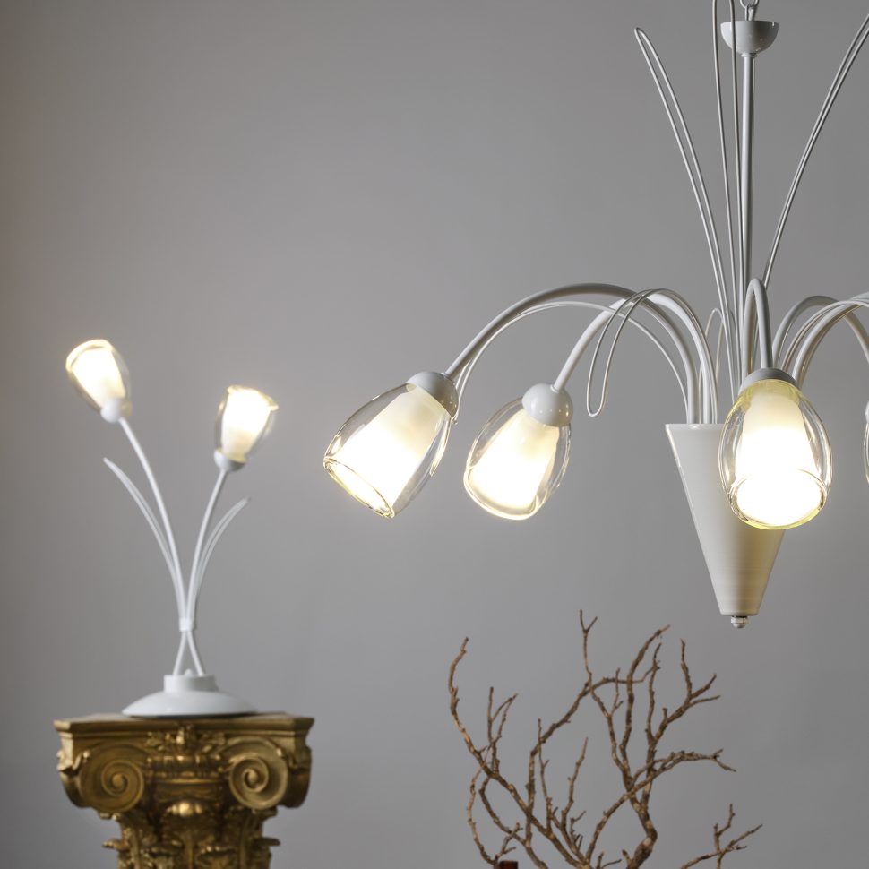 Lampada da soffitto a 5 luci. Grazie alle sue linee delicate e i suoi colori sobri, si adatta facilmente ad ogni ambiente.