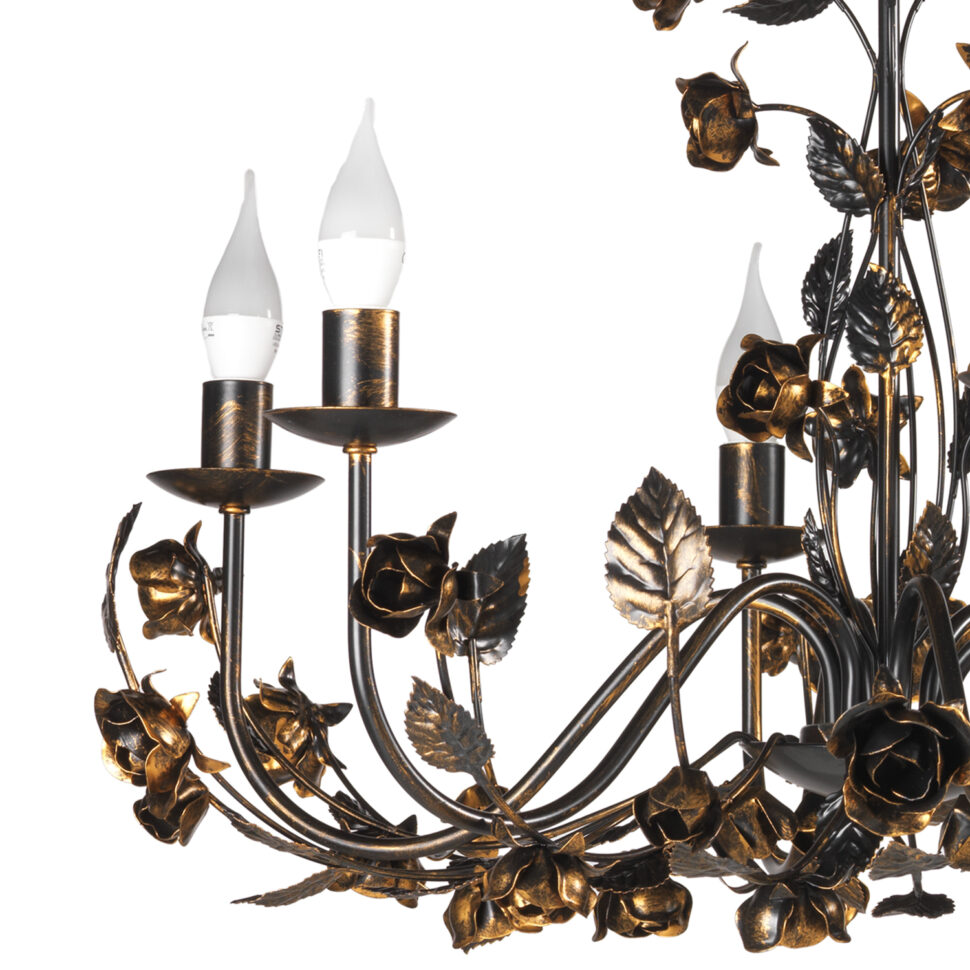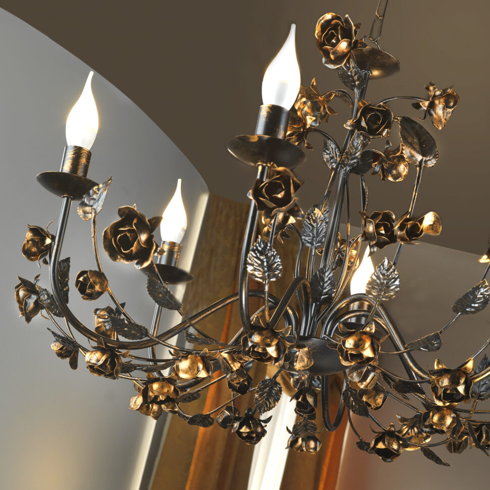 Carolina bronzo è la collezione figlia di Carolina, la linea di lampadari connubio tra passato e presente, dallo stile classico ma anche rustico e moderno. Infatti, le lampade che ne fanno parte richiamano la classicità sì con le loro forme, ma hanno anche quel quid che le rende uniche. Sono tutti modelli particolari, ricchi di dettagli eleganti. Gli elementi decorativi scelti per arricchire i modelli sono le rose, corredate ovviamente delle foglie. Il materiale utilizzato per la loro realizzazione è il ferro battuto, spennellato a mano. Nel caso specifico di questa linea bronzo, il colore è il marrone, sul quale sono state inserite manualmente delle spennellature dorate che ne accrescono il fascino. Si differenzia quindi dalla collezione sorella, la linea Carolina avorio, per il colore. I modelli di quest'ultima sono infatti i medesimi, si differenziano esclusivamente per il colore principale.