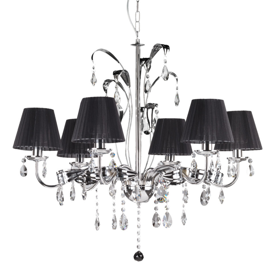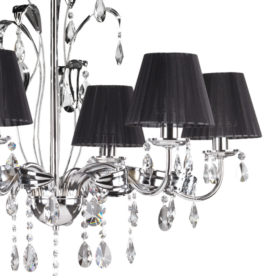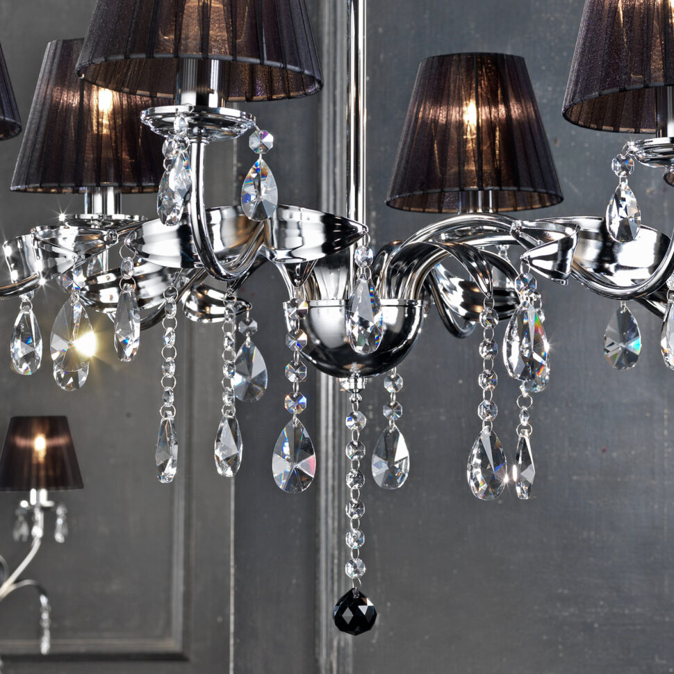 Elegante e chic è questa collezione, così come il suo nome, Jacqueline. È una linea di lampadari decisamente affascinante, presente in due varianti di colore, bianca e nera. A rendere preziosi i lampadari della collezione Jacqueline sono in primis i suoi dettagli in cristallo. Parliamo delle gocce di cristalli K9 che creano meravigliosi giochi di luce, sempre diversi. Ma anche il design contribuisce al fascino e nemmeno poco. La collezione Jacqueline nero si caratterizza per avere i paralumi in stoffa di colore nero. In particolare, essi sono in tessuto fasciato realizzato con nastro di organza e creano un'armonia cromatica perfetta con il metallo lucido delle strutture in cui sono inseriti.