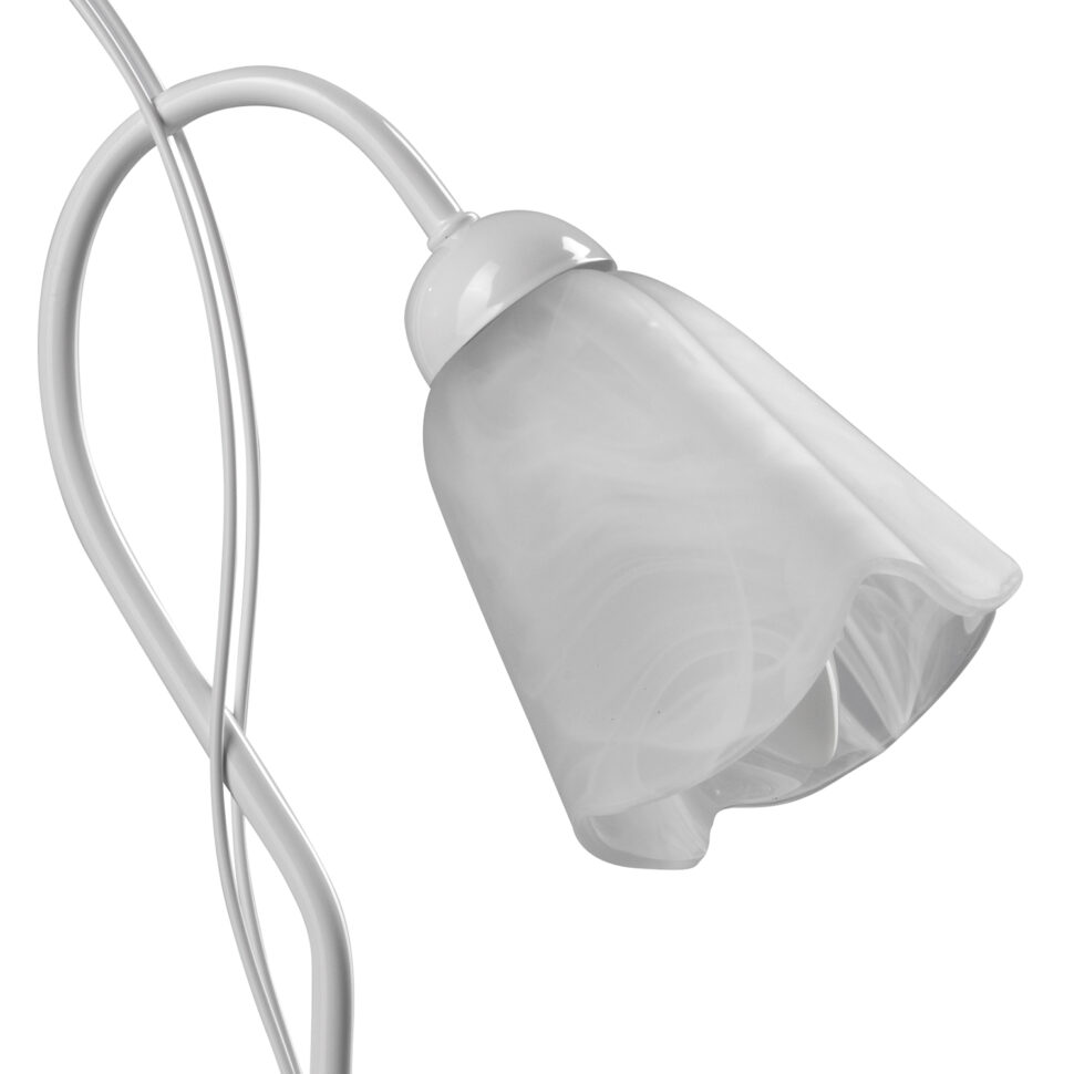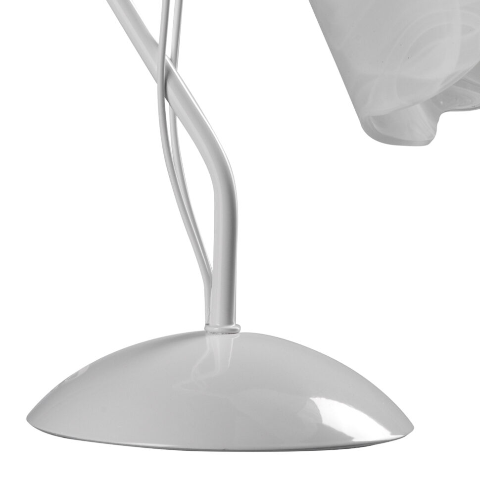 Essi sono in vetro bianco con decoro alabastro, molto fini e sofisticati. Le strutture invece hanno linee delicate e in ciascun differente modello abbiamo cercato di avvicinarci ai movimenti armoniosi e sinuosi tipici degli steli e delle foglie, cosa che puoi vedere nel dettaglio nelle singole pagine delle lampade.
