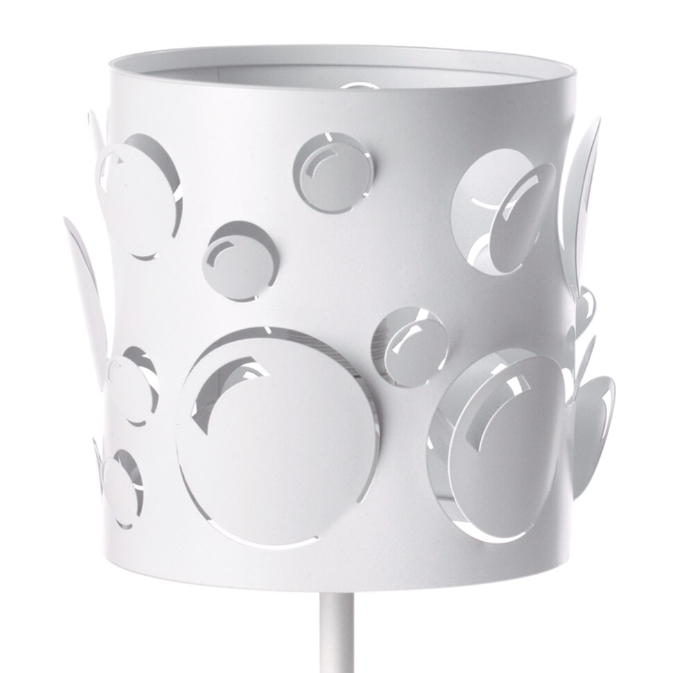 Il lumetto Bollicine è una lampada da tavolo a una luce dal design moderno ed elegante. Realizzata in total white con cablaggio trasparente, è caratterizzata da un paralume decorato con intagli circolari che richiamano la leggerezza delle bolle, creando un effetto luminoso originale e raffinato. Pensata per interni, è ideale da posizionare su comodini o tavolini e si abbina perfettamente alla piantana e alla sospensione della stessa linea, per un ambiente coordinato e di grande stile.