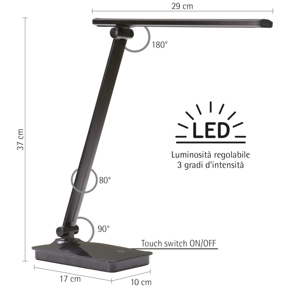 La lampada da scrivania Deski in versione nera è un perfetto esempio di design moderno ed essenziale. Le linee compatte e minimaliste la rendono ideale per qualsiasi ambiente di lavoro, dagli uffici professionali alle postazioni studio domestiche. È dotata di LED integrato, regolabile in intensità tramite pratico interruttore touch. L’inclinazione sia della struttura che della testa della lampada può essere modificata, garantendo sempre la giusta direzione della luce. Un ulteriore punto di forza è la presa USB incorporata, che permette di ricaricare smartphone e dispositivi elettronici, offrendo massima praticità a chi passa molte ore alla scrivania.