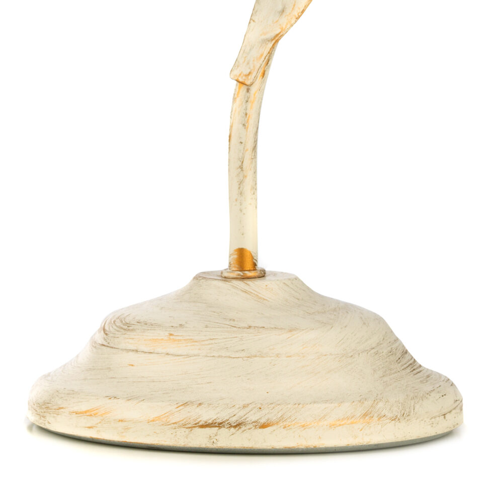 Lampada da tavolo color avorio spennellato oro a 1 luce con attacco E14. La struttura in ferro presenta una decorazione di foglia che rende il prodotto elegante e classico. Il lumetto è largo 23 cm e alto 33 cm.