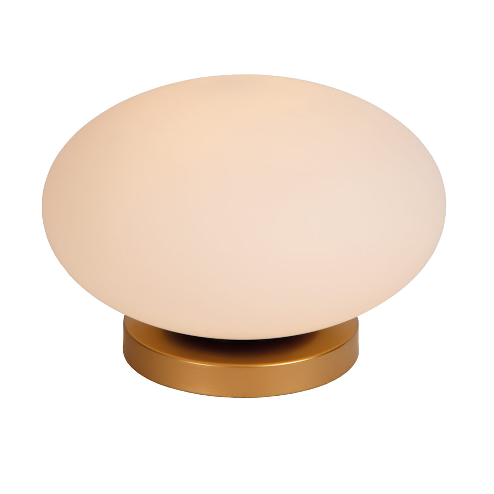 Versione più imponente del lumetto, pensata per arredare con eleganza madie, consolle o tavoli. La base dorata regala un tocco sofisticato, mentre il diffusore ovale in vetro bianco latte diventa protagonista grazie alle dimensioni generose. Un punto luce capace di unire funzionalità e decorazione, perfetto per salotti e camere da letto moderne.