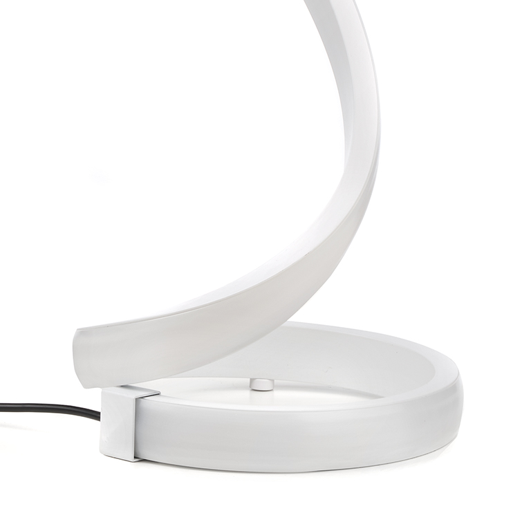 Il lume Ricciolo è una lampada da tavolo dal design moderno, che si compone esclusivamente di una struttura curvilinea dall'altezza totale pari a 32 cm. Si tratta di una lampada total white, il cui aspetto porta candore negli ambienti, che possono essere un soggiorno oppure una camera da letto.