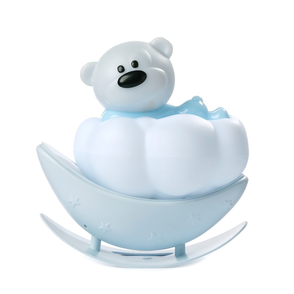 Questa lucina è ricaricabile: all'interno della scatola a colori viene fornito anche il cavetto USB-C. Una volta ricaricata può essere posizionata dove si preferisce, farà compagnia al vostro bambino!