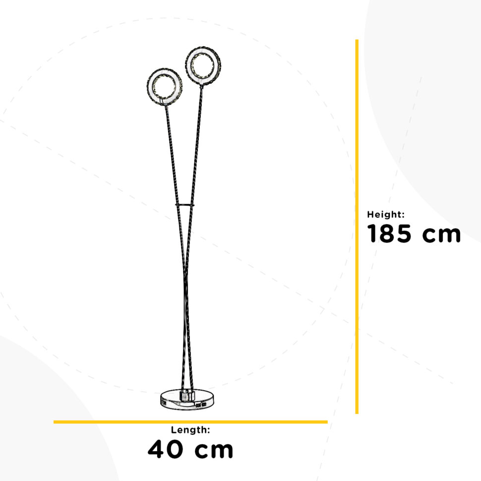 La piantana Saturno è una vera scultura luminosa che unisce design e funzionalità. Le due strutture circolari arricchite da cristalli si elevano su linee sottili e slanciate, diffondendo una luce scenografica che impreziosisce l’ambiente. Perfetta per salotti e zone living, diventa un punto focale sia di giorno che di sera, regalando un tocco di modernità e raffinatezza agli interni.