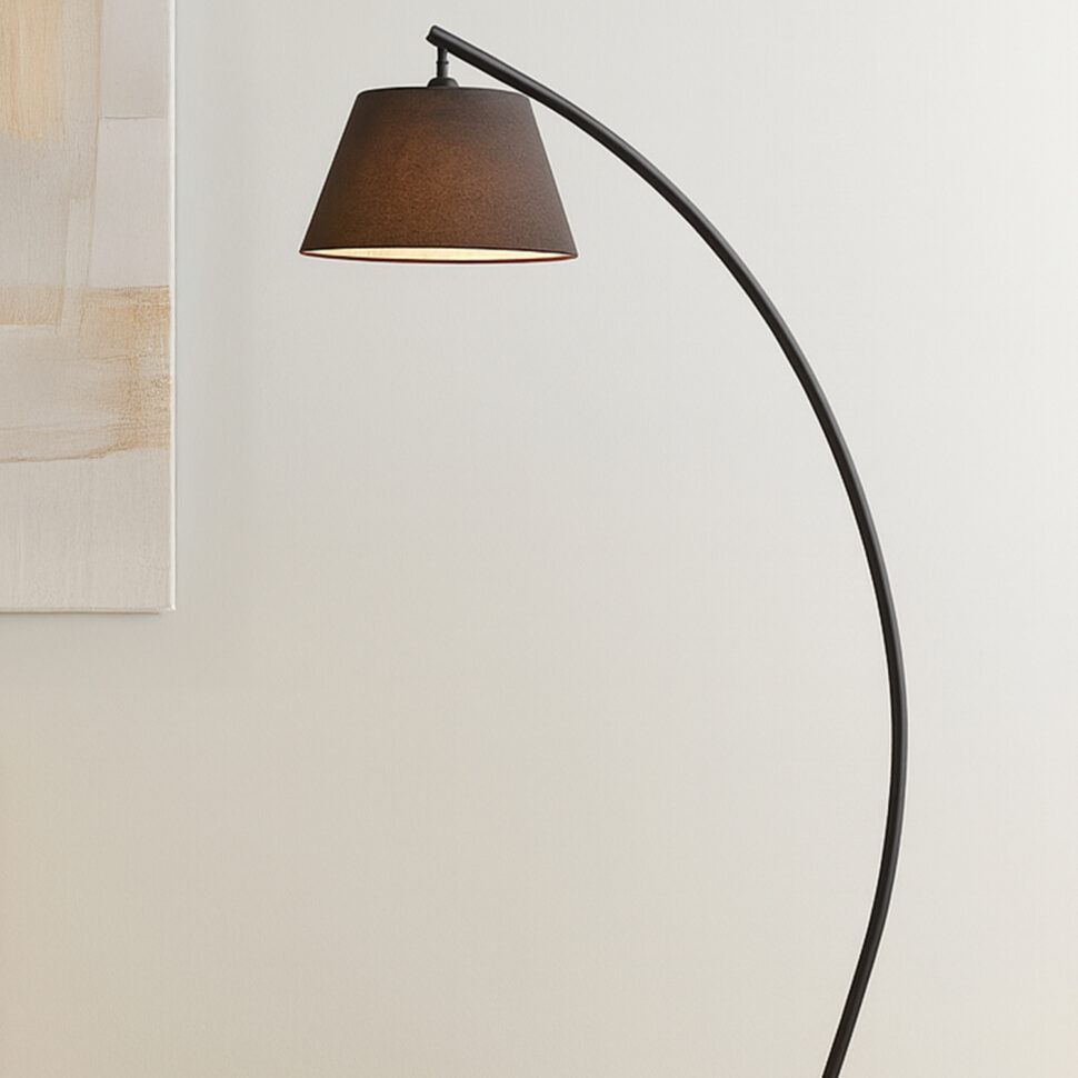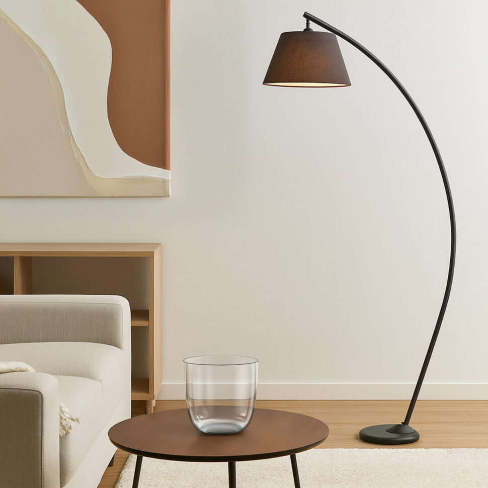 La piantana SUSI in finitura nera esprime un carattere deciso e moderno. La struttura arcuata in metallo scuro si abbina al paralume in tessuto nero, creando un contrasto elegante e un look minimalista dal forte impatto visivo. Pensata per spazi dallo stile industriale, moderno o urban chic, questa versione diventa protagonista del soggiorno, offrendo un punto luce morbido e avvolgente che contribuisce a creare atmosfere intime e sofisticate.