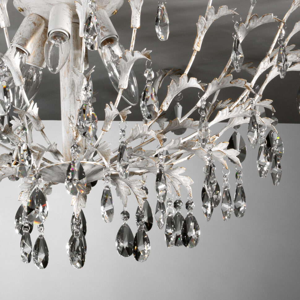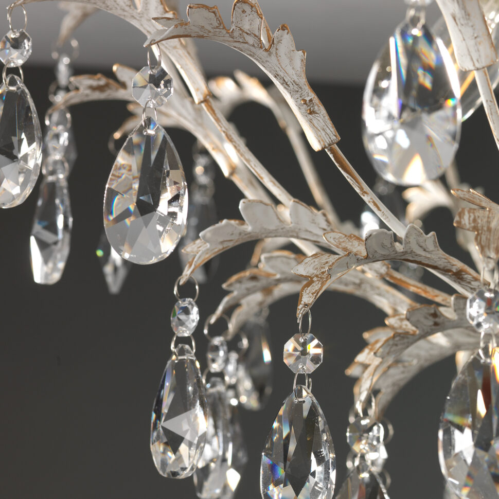 Lo stile della linea Cesta è classico, decisamente elegante e raffinato, adatto sia ad abitazioni sia alle sale di ristoranti. Vediamo bene i suoi modelli in ambienti arredati secondo i gusti e lo stile del passato, che non passa mai di moda. La presenza delle pietre preziose crea dei bellissimi giochi di luce e ben si sposa con le strutture in ferro lavorato a mano di color avorio; il colore è reso anticato grazie a delle generose spennellate dorate. Completano poi il design delle decorazioni floreali, vale a dire delle foglie realizzate anch'esse con lo stesso materiale delle lampade.