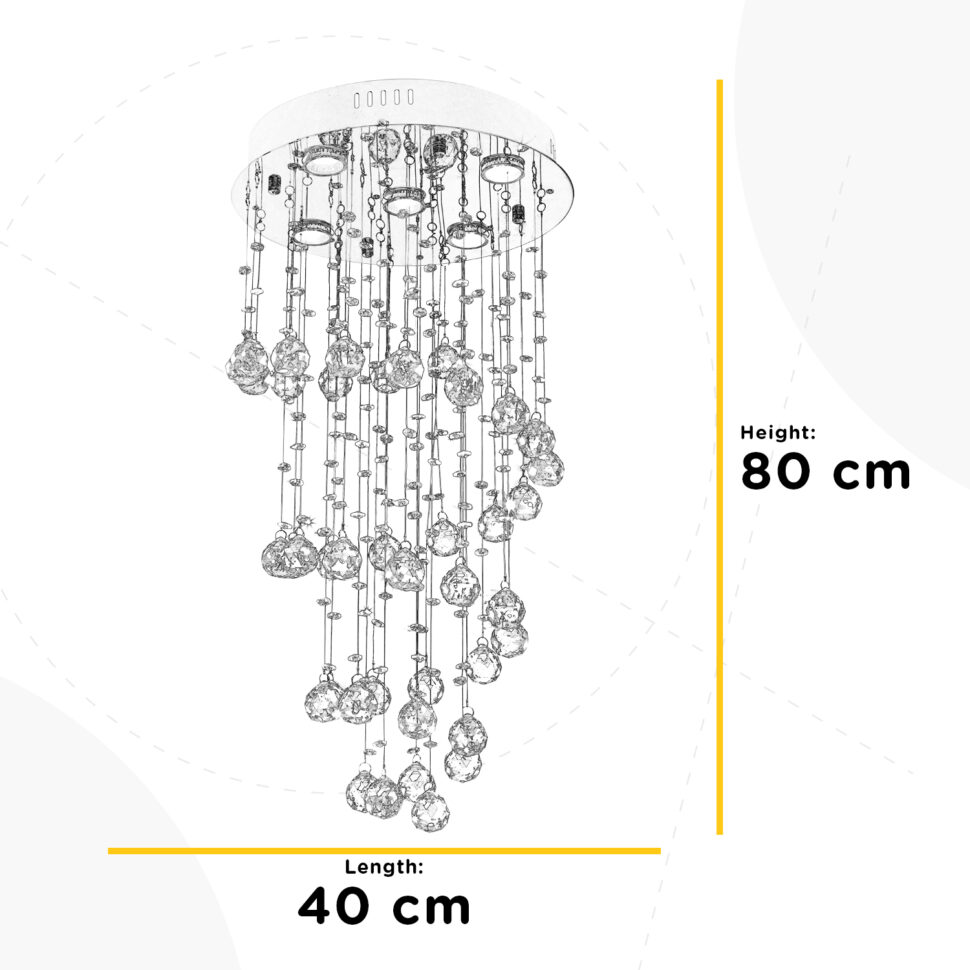 Ciò che colpisce della lampada è il fascio luminoso che emette, così come il gioco di luci e riflessi che si crea anche quando le luci sono spente. L'aspetto cangiante dei cristalli rende la plafoniera luminosa ad ogni ora del giorno.