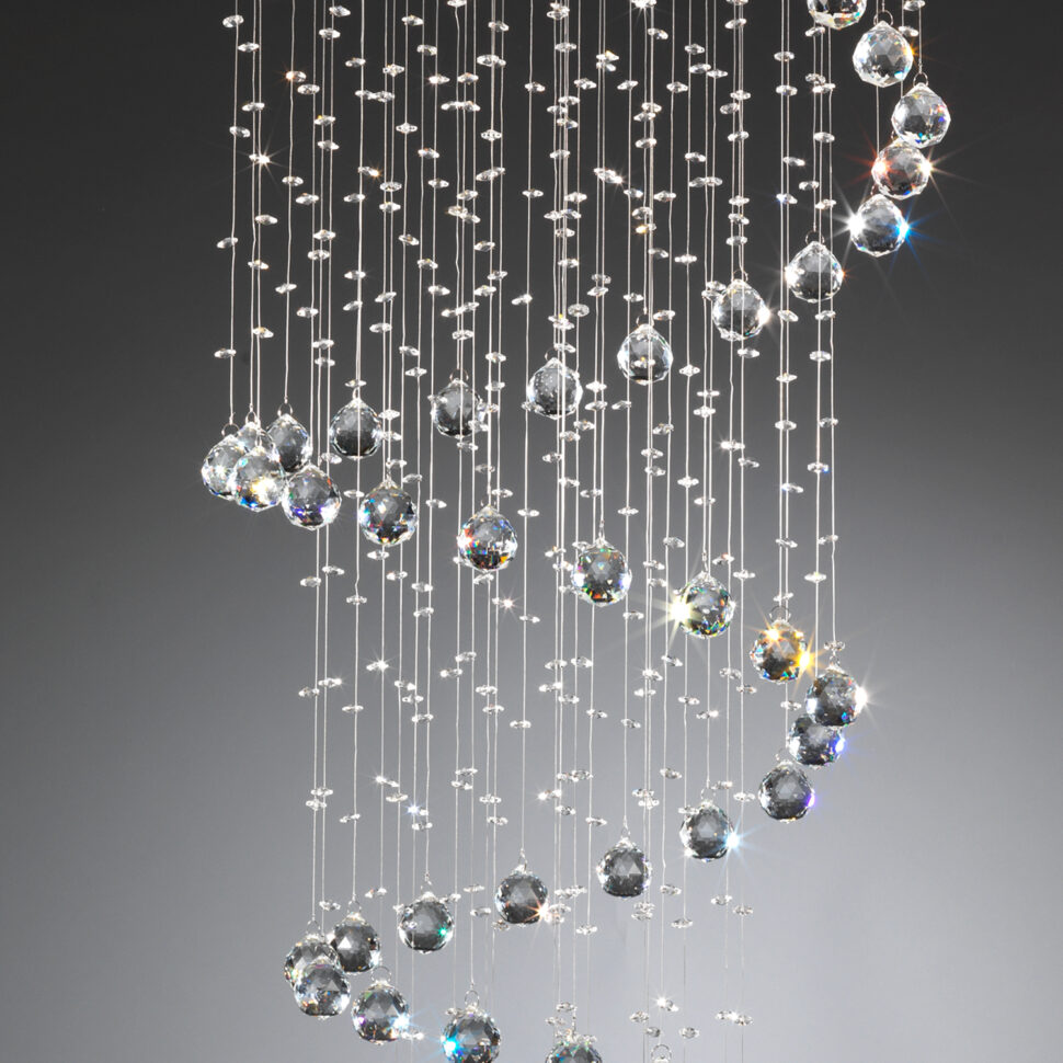Tutti i modelli si caratterizzano, infatti, per la grandissima luminosità e per l’aspetto affascinante, grazie alla generosa presenza di cristalli, che formano delle ipnotiche spirali che dall'alto scendono verso il basso.