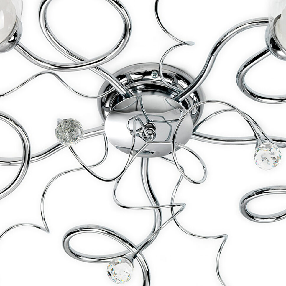 La plafoniera Wendy è una lucente e luminosa lampada da soffitto o da parete dal design moderno, sinuoso ed elegante. Si tratta di un modello di lampada a 5 luci molto versatile, non solo per il fatto che si può fissare al soffitto o a parete, bensì per il fatto che crea armonia ovunque lo si metta. Può stare bene sia in un salotto che in una camera da letto, camera da letto che potrebbe essere di un hotel o B&B per esempio.