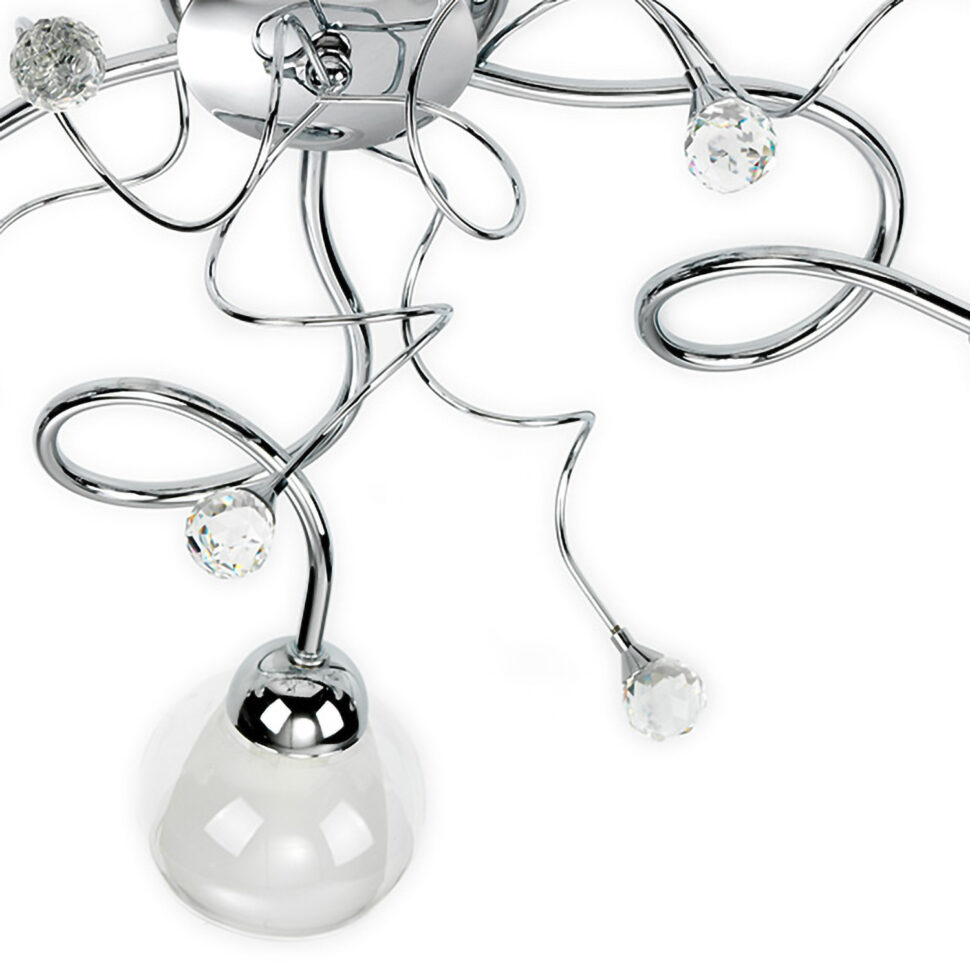Abbiamo detto che è una lampada lucente e questo è grazie alla sua struttura in metallo color cromo lucido, che riflette molto la luce, al pari dei dettagli che la arricchiscono e che la rendono quindi luminosa. Parliamo delle sfere di cristallo K9 che ingentiliscono, impreziosiscono ed illuminano la plafoniera Wendy.