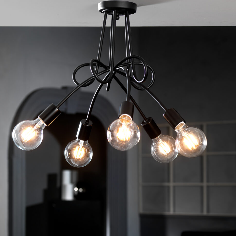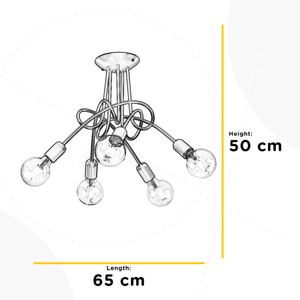 La plafoniera Wire a 5 luci è una soluzione luminosa dal design industriale e moderno, pensata per chi cerca un punto luce scenografico ma al tempo stesso essenziale. Realizzata interamente in metallo verniciato nero, presenta una struttura fissa e geometrica che sostiene i cinque portalampada, disposti con armonia per garantire un’illuminazione diffusa ed equilibrata. L’apparecchio per interni è idoneo per l’installazione a parete o soffitto. Abbinalo con sospensione, lumetto, piantana e lume della stessa linea.