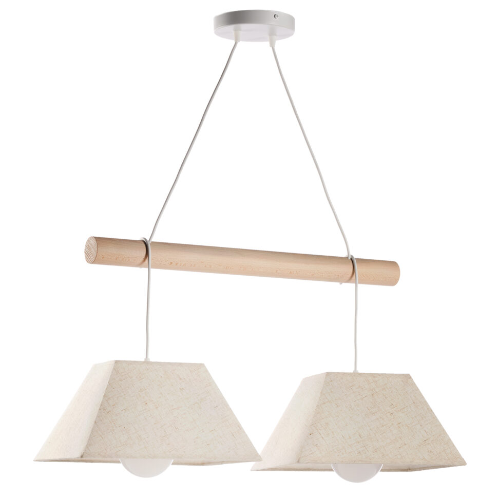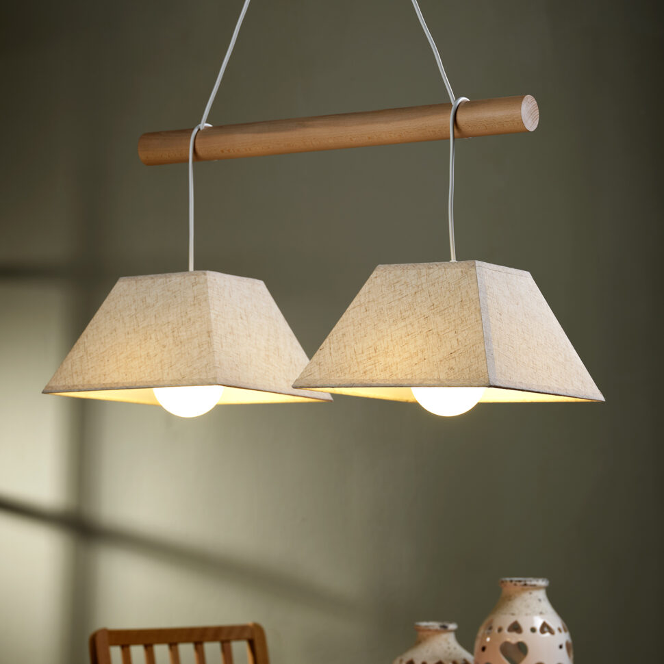 La sospensione Baldo è una lampada da soffitto dal design moderno ed originale, perfetto soprattutto per la zona giorno di case ed appartamenti arredati in stile contemporaneo ed urbano. I punti luce sono due, e sono posti all'interno di paralumi color sabbia. I paralumi sono, dunque, identici ed hanno un cablaggio nero, il quale fa un giro sopra un'asta in metallo con effetto legno. Sono posti alla stessa altezza, ma se vuoi puoi personalizzarla e mettere i diamanti su due altezze differenti.