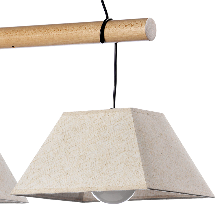 L'altro fattore che contraddistingue la collezione Baldo è l’asta a cui si appendono i paralumi. Tale barra dona un aspetto un po’ naturale alle lampade, nonostante non sia veramente in legno come potrebbe sembrare. Si tratta di un tubo metallico in cui è stato dato un effetto legno. La sua presenza è molto importante in quanto contribuisce alla creazione di atmosfere autenticamente confortevoli.