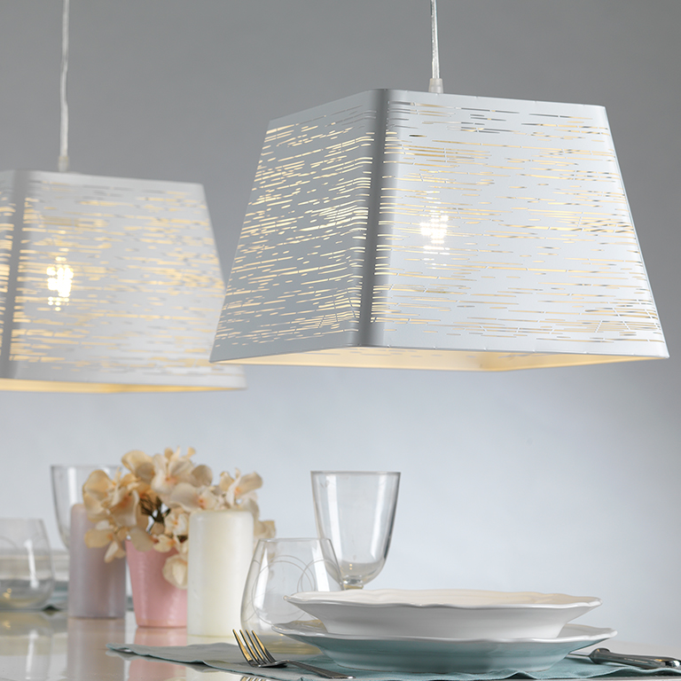 Per un'illuminazione di qualità per la zona giorno di casa tua o per i locali del tuo bar o tavola calda, scegli la collezione Bobby. Si compone di lampade dal design moderno, semplice ed equilibrato. Già vedendole in foto si può percepire la loro grande propensione alla creazione di ambienti accoglienti ed informali, dove viene immediatamente da sentirsi a proprio agio, come a casa. La particolarità delle lampade Bobby, oltre ai colori chiari, che sono in grado di trasmettere sensazioni positive e rilassanti, è la decorazione presente sui paralumi. Essi sono infatti trapezoidali e realizzati in alluminio. Sono resi unici da delle striature, che altro non sono che sottili fessure ottenute con la tecnica di taglio laser. Da esse filtra la luce e si generano, quindi, dei piacevoli effetti ottici. Ciò che ci sentiamo di aggiungere, infine, è la straordinaria versatilità delle lampade, che possono armonizzare cucine o sale da pranzo arredate anche con stili diversi, non necessariamente moderni.