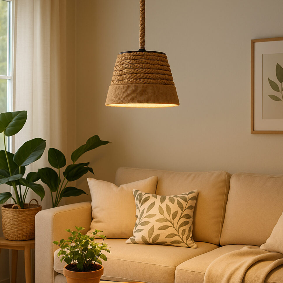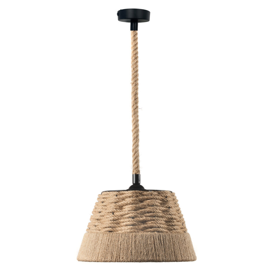 La sospensione Coen è una lampada da soffitto a 1 luce con attacco E27 che unisce semplicità ed originalità. Il paralume e il cavo sono interamente rivestiti in corda naturale, un materiale che richiama lo stile rustico e marittimo, ma che si adatta perfettamente anche ad ambienti moderni con un tocco boho o industrial. Un dettaglio distintivo della sospensione Coen è il cavo particolarmente lungo, che permette di personalizzare l’installazione: spesso viene annodato con uno o due nodi, trasformando la lampada in un elemento decorativo unico e creativo. La luce diffusa dall’interno, calda e morbida, si abbina alla texture della corda, creando un’atmosfera accogliente e rilassante. È ideale per cucine, salotti, taverne o locali che vogliono trasmettere pacatezza e naturalezza.
