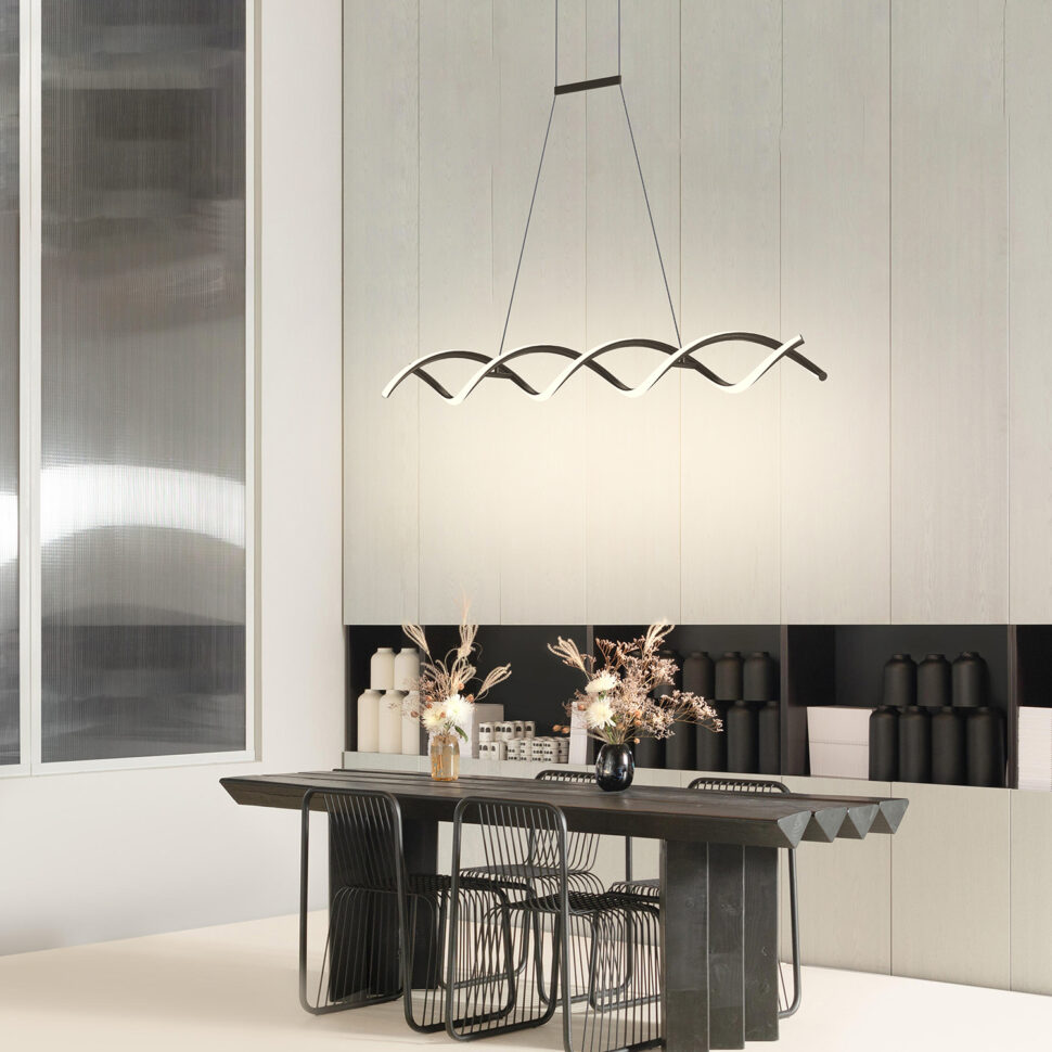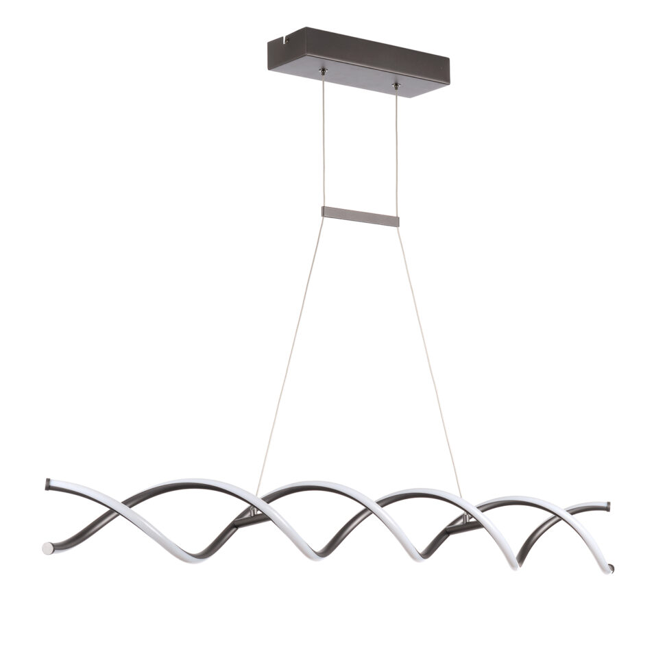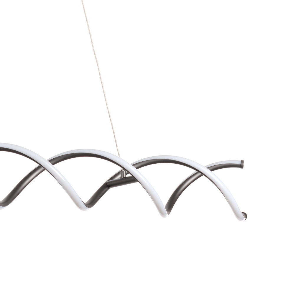 La sospensione DNA è un lampadario a LED che si distingue per la sua forma fluida e ondulata. La finitura titanio esalta le linee moderne e sofisticate, mentre i fasci luminosi integrati nei profili diffondono una luce elegante e scenografica. Sospesa con cavi sottili, dona leggerezza e movimento all’ambiente, risultando perfetta per il salotto, la sala da pranzo o spazi dal carattere contemporaneo.