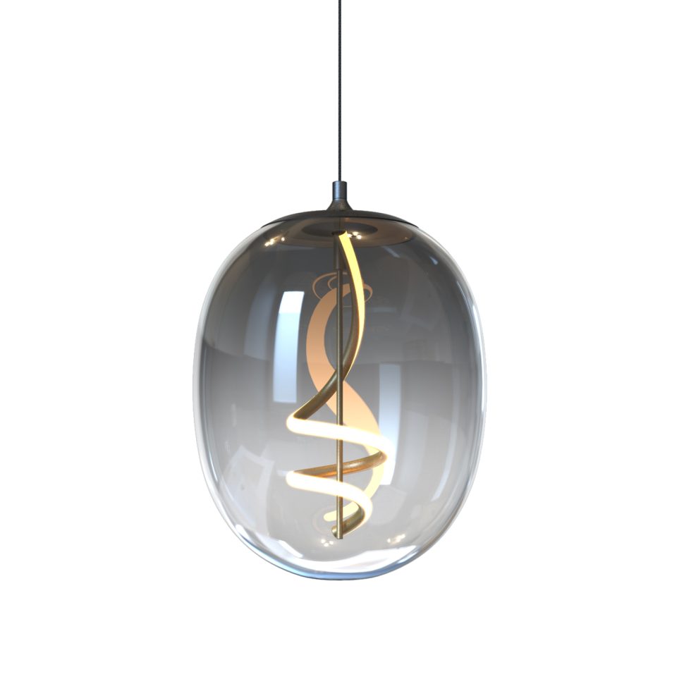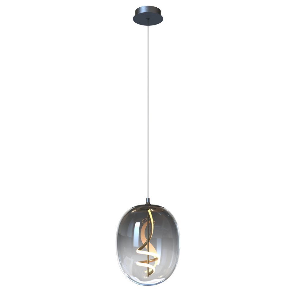 La sospensione LILLY è un elegante punto luce moderno, caratterizzato da un raffinato diffusore in vetro fumé di forma ovale con diametro di 28 cm. All’interno, un corpo illuminante a LED da 12W con tonalità 4000K luce naturale diffonde una luminosità omogenea e accogliente, ideale per ambienti contemporanei. Il design è reso unico dall’inserto interno a spirale in metallo finitura oro, che crea un suggestivo gioco di riflessi con il vetro fumé, donando movimento e personalità alla lampada. La struttura a sospensione con cavo regolabile consente di adattarla a diverse altezze, rendendola perfetta sia per zone living e dining che per spazi contract ricercati. Un mix di modernità e raffinatezza che trasforma la luce in un vero elemento d’arredo.
