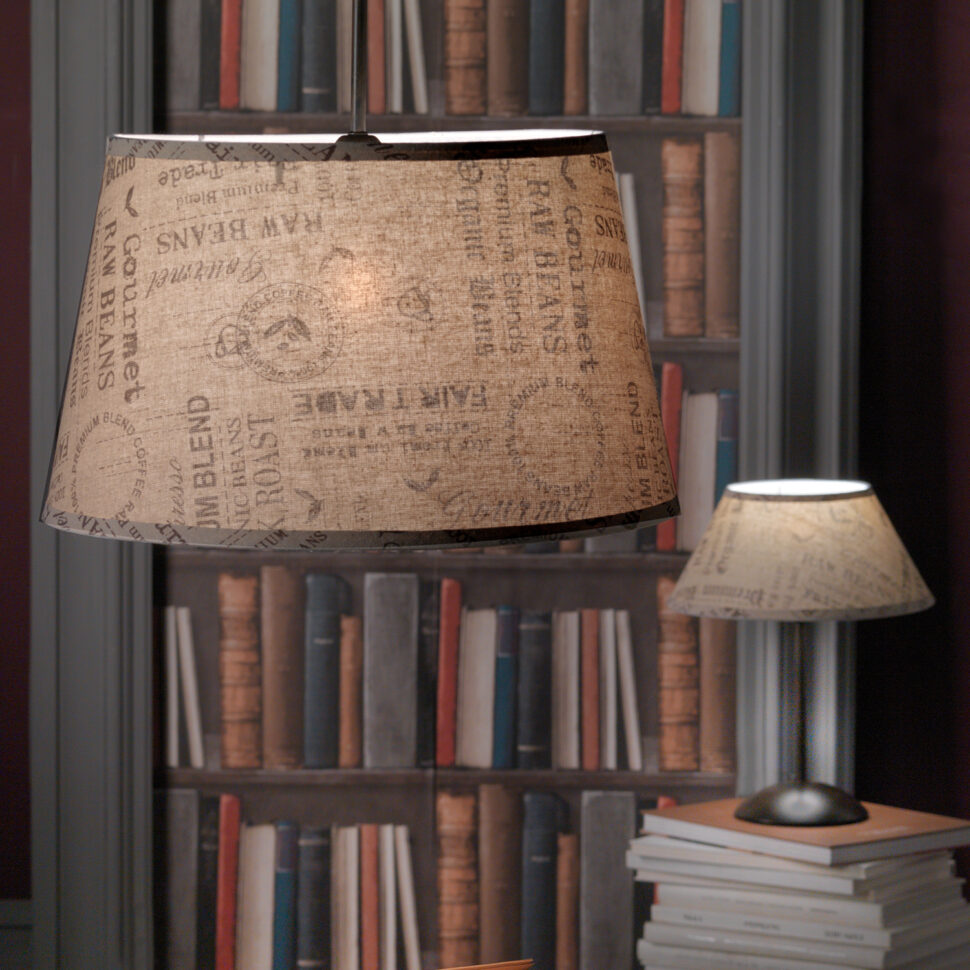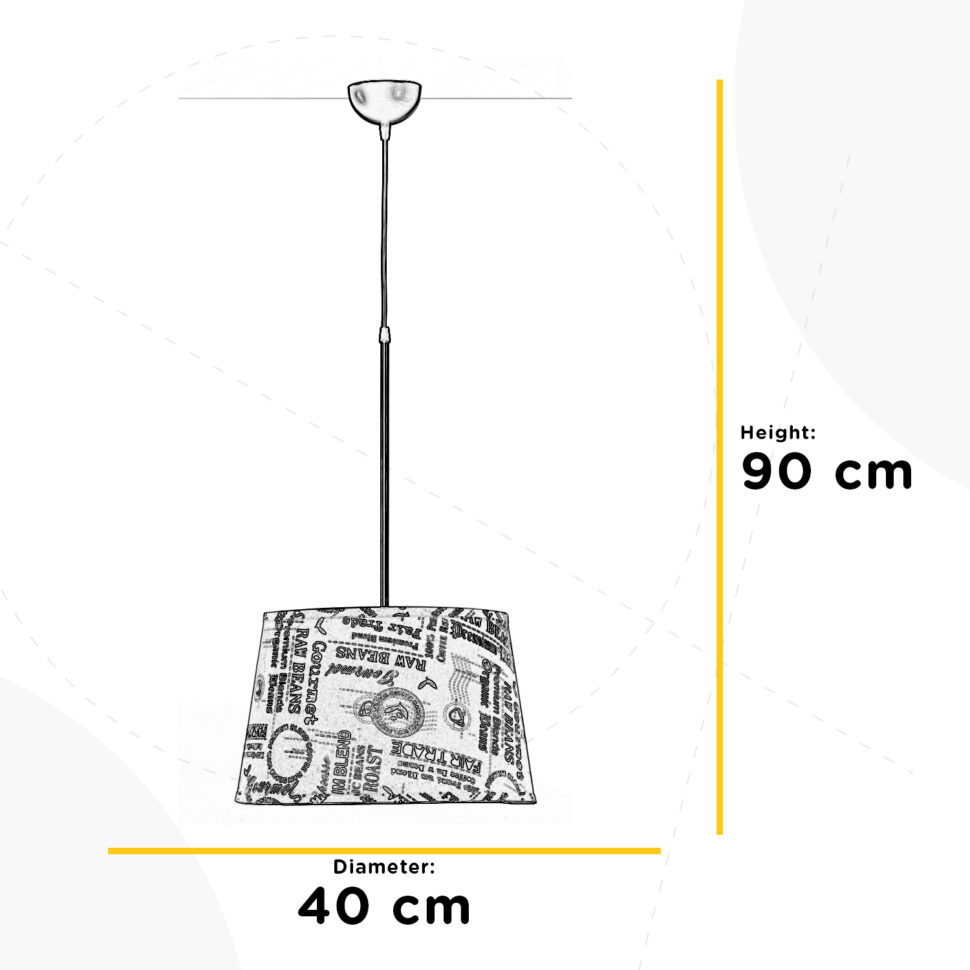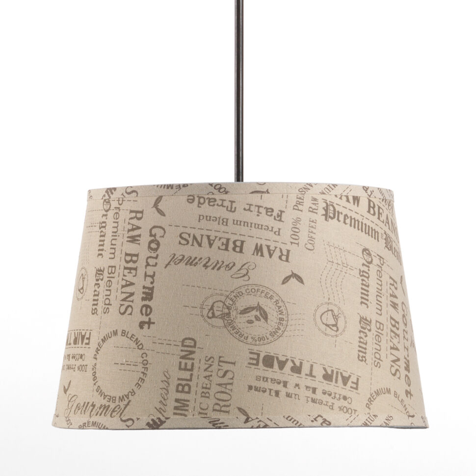 La sospensione MAIDA presenta un paralume in tessuto con stampa tipografica dal gusto retrò che diffonde una luce morbida e avvolgente. Sorretto da un cavo nero, è ideale per illuminare tavoli da pranzo, cucine o ambienti dallo stile rustico e industrial chic, aggiungendo carattere e personalità all’arredo.