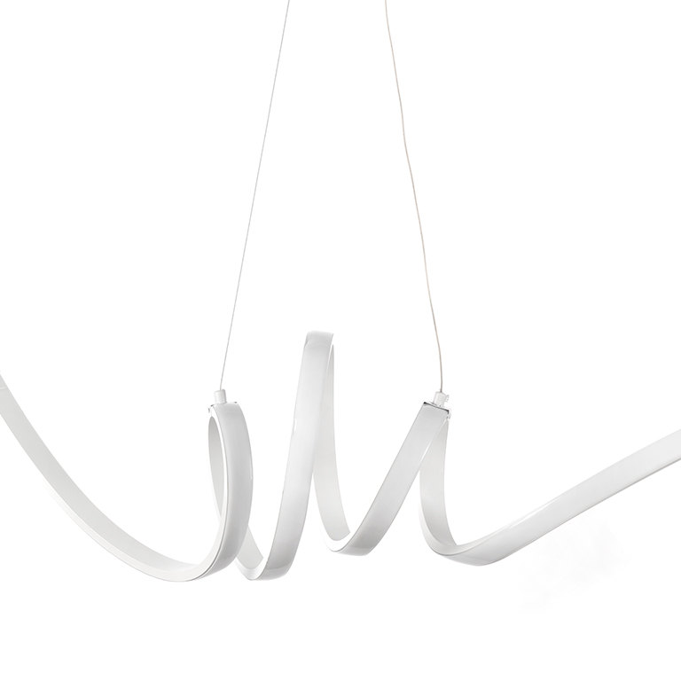 Completamente bianca, fatta eccezione per il cablaggio trasparente, è la lampada da soffitto della collezione Ricciolo. Si tratta di una lampada moderna, di design, che si compone di un profilo curvilineo animato da tre riccioli che possono ricordare una sorta di spirale.