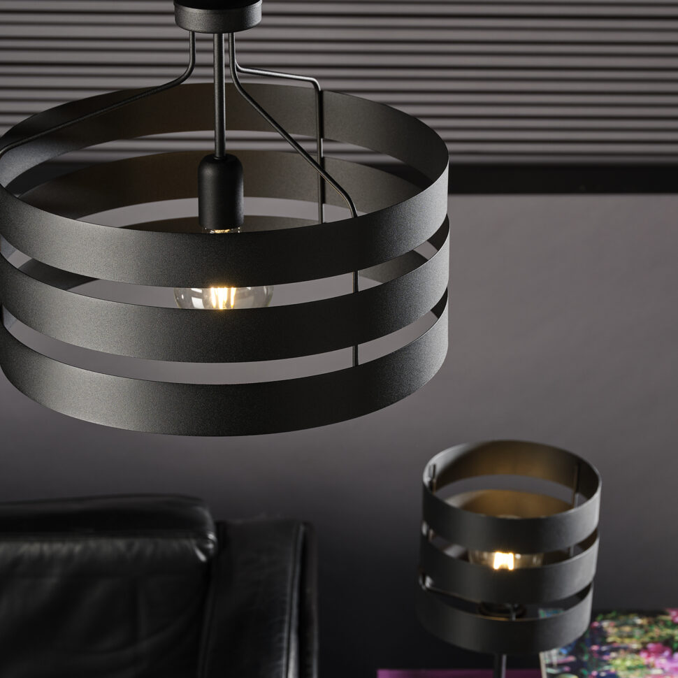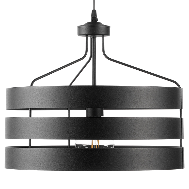 La sospensione Ulisse è una moderna lampada da soffitto in metallo nero. Il suo design è semplice ed originale al tempo stesso, in quanto si compone essenzialmente di tre fasce metalliche che avvolgono circolarmente l'attacco per la luce, che è di tipo E27.